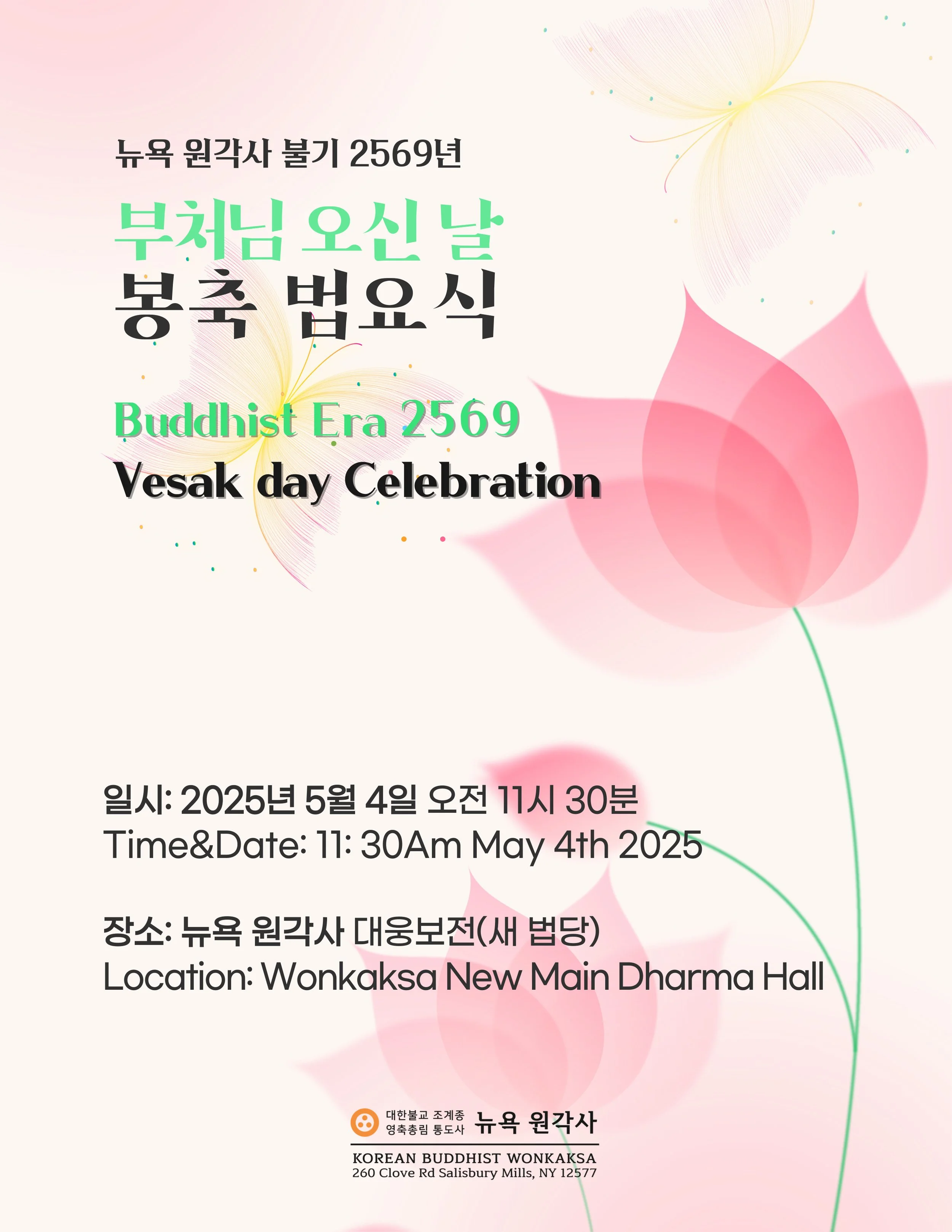 뉴욕 원각사 대웅보전 WONKAKSA Main Dharma Hall